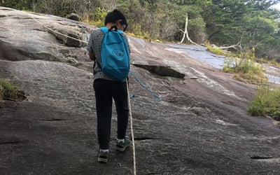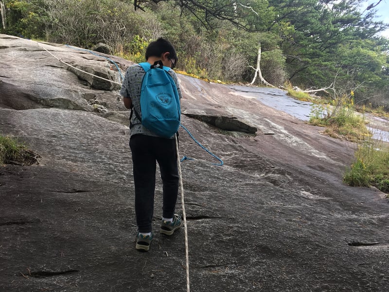 Suitable for ages 7+; participants must be able to hike and feel comfortable on rock with a rope. In rain, the route may skip rock sections and approach from the other side. Bring hiking shoes, warm layers, raincoat, lunch and water.