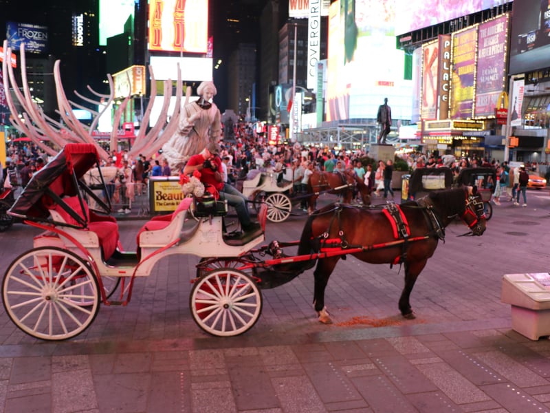 Ride a horse-drawn carriage from Central Park to Rockefeller and Times Square in 50 minutes
