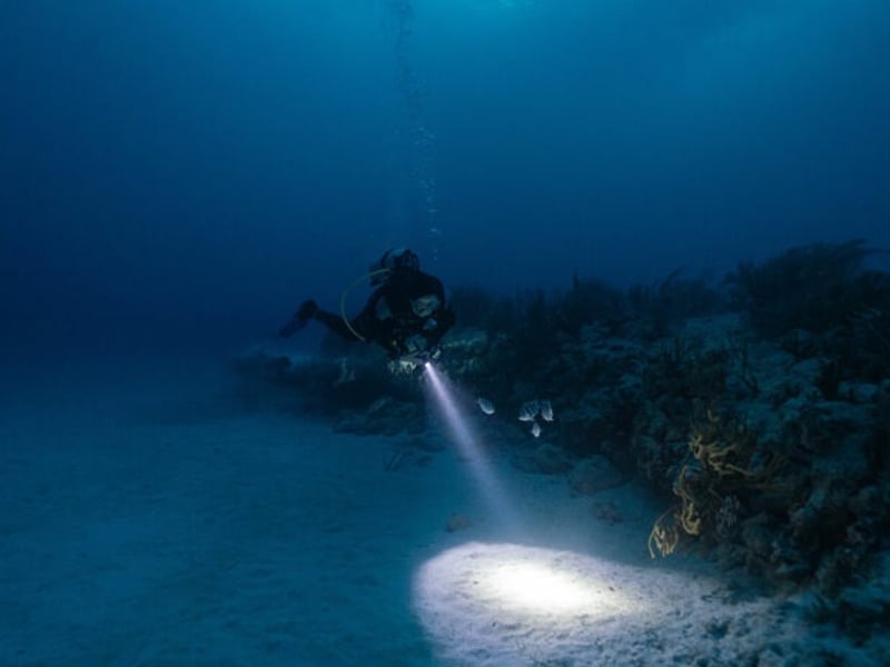 Experience Hawaii Island's vibrant marine life on a guided night dive for certified adventurers