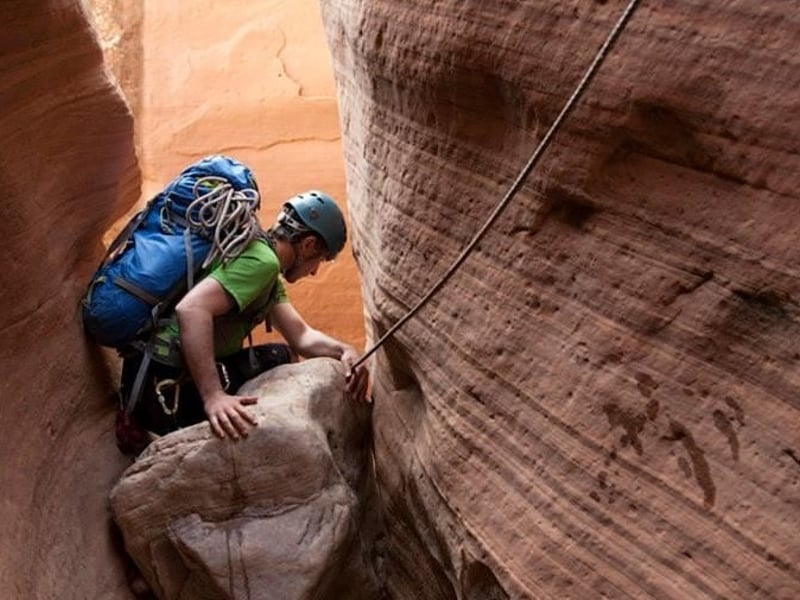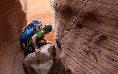 Navigate rappels, scrambles, and water-carved obstacles on a guided half-day slot canyon route