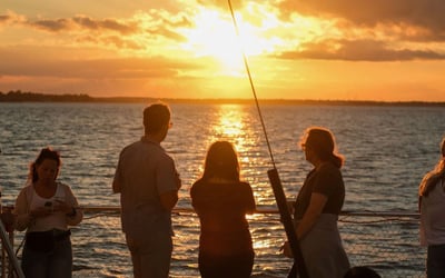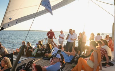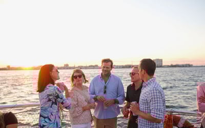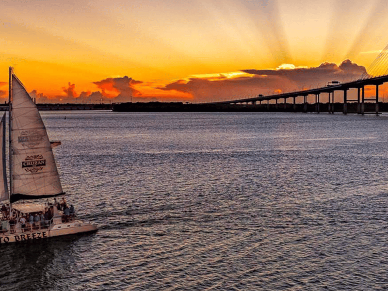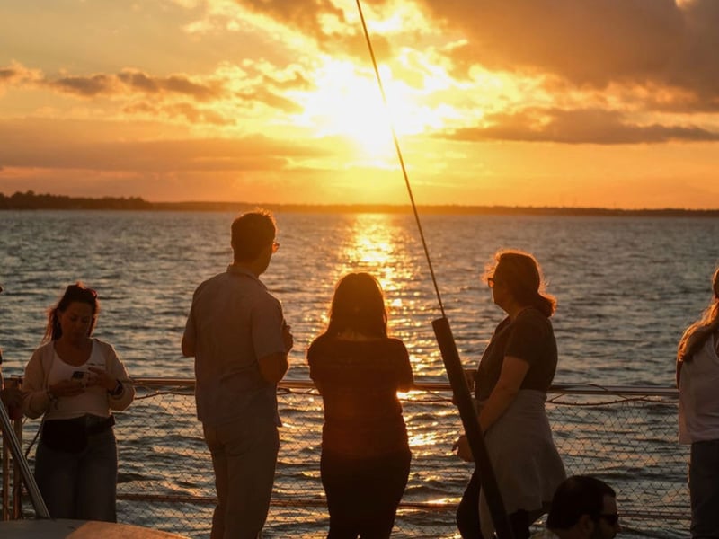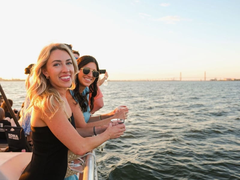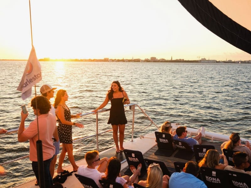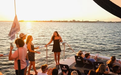 Sail Charleston Harbor at golden hour with music, skyline views, and a full bar