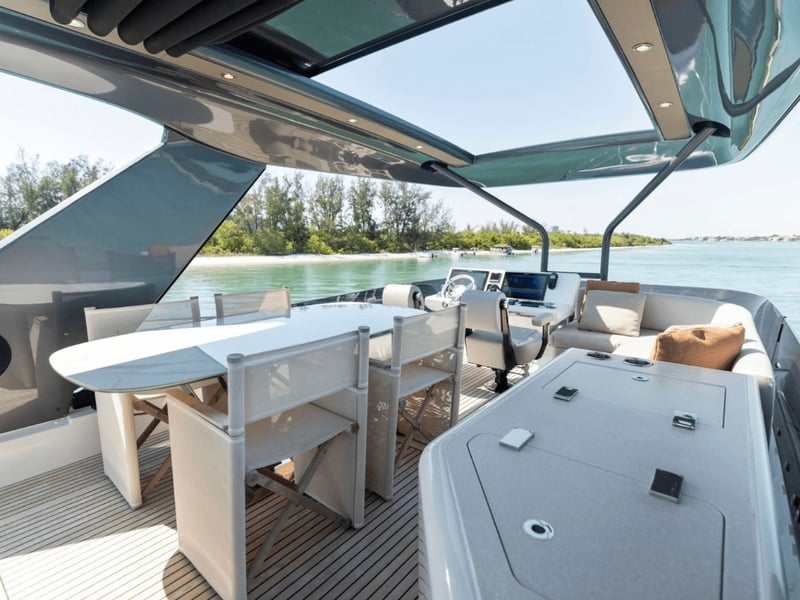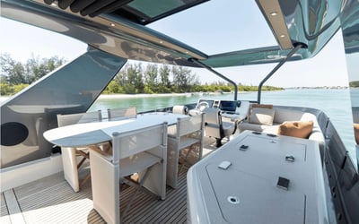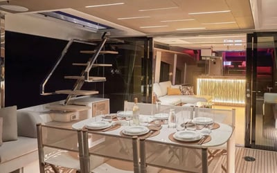 Set sail on Charlotte, a luxury yacht featuring Seakeeper gyro stabilization for a smooth ride. Enjoy spacious indoor and outdoor areas, water toys, and thoughtful amenities for your charter.