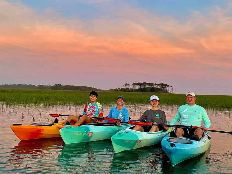Justin and Laurie run a welcoming kayaking operation that consistently delivers memorable marsh and island tours. Their guides, including Justin, Clark, Diego, and Laurie, are praised for being knowledgeable about local wildlife and sharing fascinating details about birds, crabs, horseshoe crabs, and other creatures along the way. The Waties Island trips are particularly popular, offering beautiful scenery, a chance to explore a private beach, and interesting stops like the "oyster wall." Twilight paddles add a special touch with gorgeous sunsets and bioluminescent algae displays. The logistics are hassle-free. They provide quality kayaks and life vests, include shuttle service to the launch point, and handle rescheduling gracefully when weather doesn't cooperate. Tours typically last about 2.5 hours with time to swim, shell, or explore the island. First-timers feel comfortable with the patient instruction, and repeat customers keep coming back year after year. One reviewer mentioned a guide with poor English and vague instructions that led to minor navigation issues, but this seems to be an isolated experience amid overwhelmingly positive feedback about the personable, informative guides who make the trips both educational and fun.