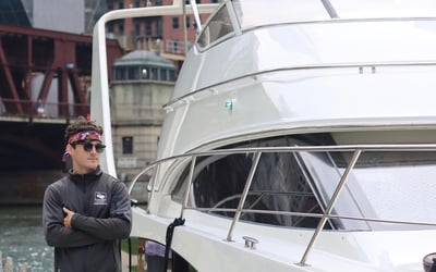 Charter a 47 ft yacht to cruise the Chicago River or Lake Michigan with BYOB and skyline views