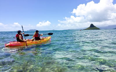 Embark on a self-guided kayak adventure from Kailua to Mokoli'i, also known as Chinaman's Hat. Paddle, snorkel, and hike for sweeping views of Oahu's east side.