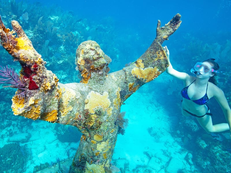 Viewing the statue is weather dependent; if conditions aren’t ideal the captain selects another reef. Available March 15–September 15. Snorkel not included; snorkelers under 18 must be with an adult.