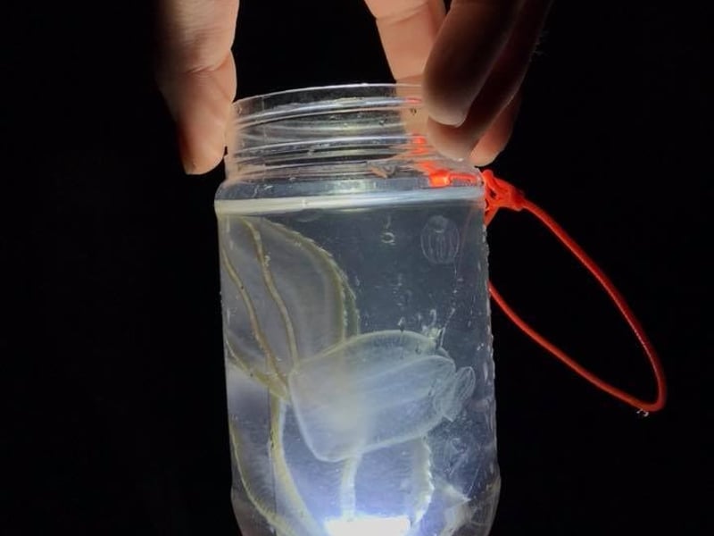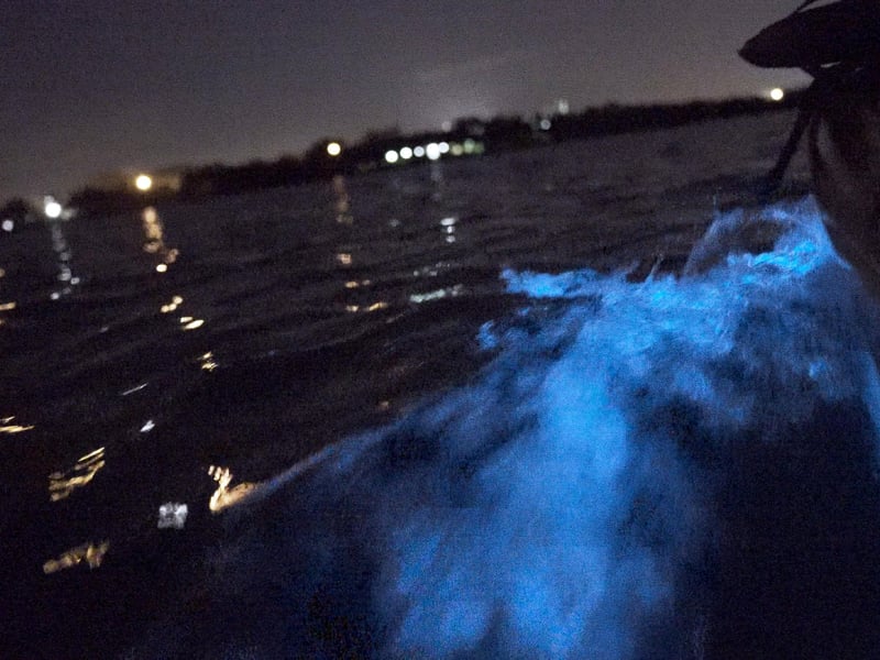 Tandem kayaks are primarily used; single kayaks are available on an as-needed basis. Dinoflagellate bioluminescence is best May to early November; cooler months feature comb jellies.