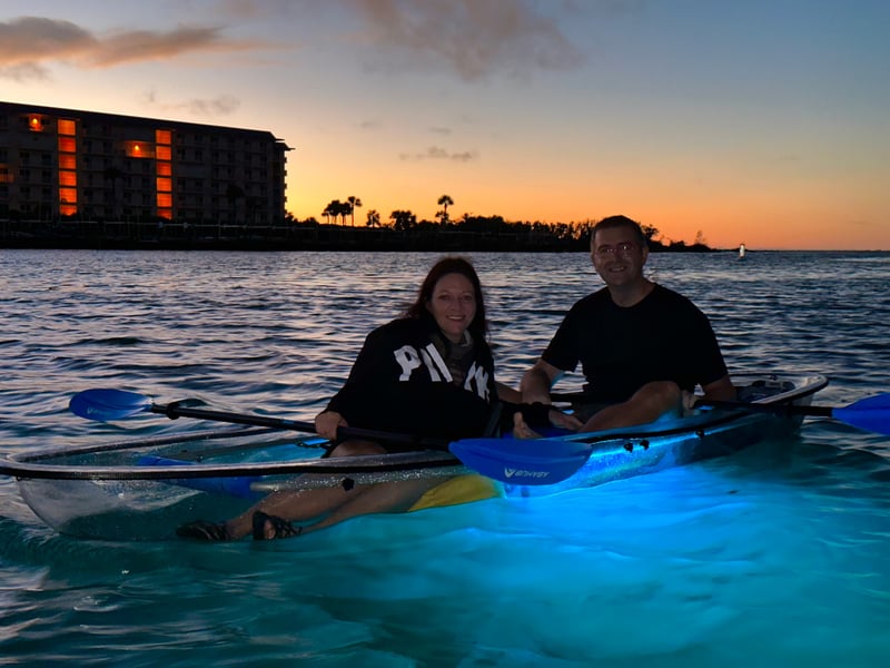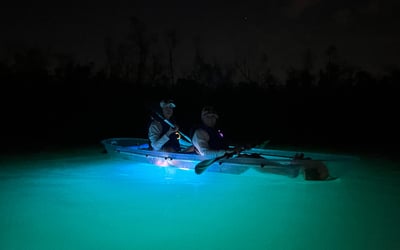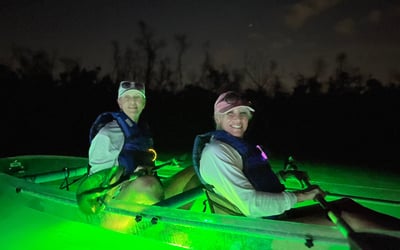 Enjoy a peaceful paddle through Big Hickory Island mangroves to a secluded gulf beach, perfect for shelling and sunset views. Experience the return journey with colorful LED lights illuminating your clear kayak adventure.