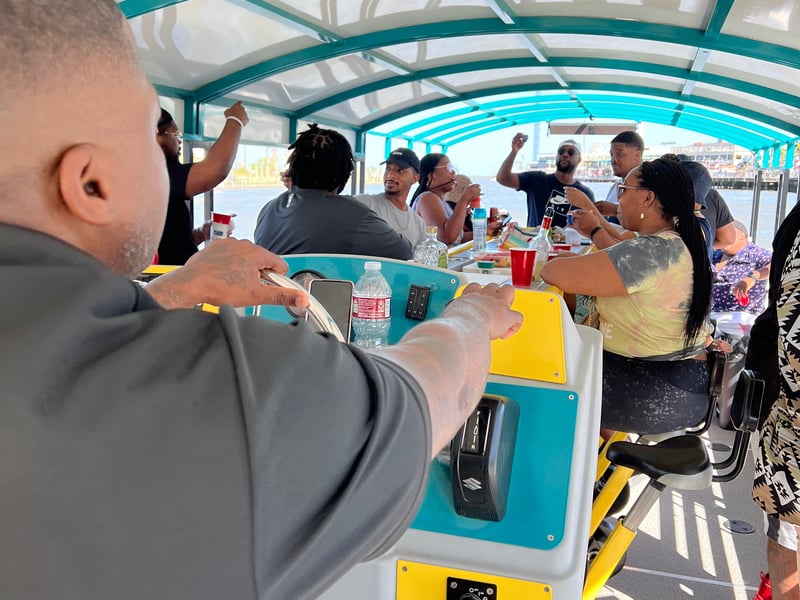 Pedal-powered BYOB boat tour with music as you cruise past the Kemah Boardwalk.