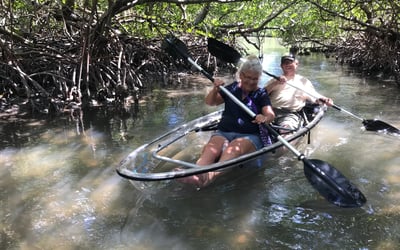 Glide in a transparent tandem kayak among dolphins, manatees and mangroves on a flexible two-hour self-guided adventure.