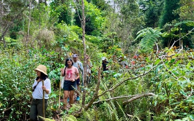 Journey through the Kona Cloud Forest Sanctuary on a 2.5-hour guided walk and connect with Hawaiʻi's rare montane jungle ecosystem. Learn about geology, climate, and conservation while surrounded by towering trees, ferns, bamboo, and native honeycreepers.