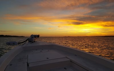 Set sail on a private 24-ft Pathfinder to watch the sun dip over the Lowcountry's serene tidal creeks. Relax with friends as your captain navigates coastal marshes for unforgettable sunset views.