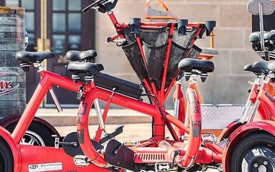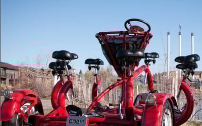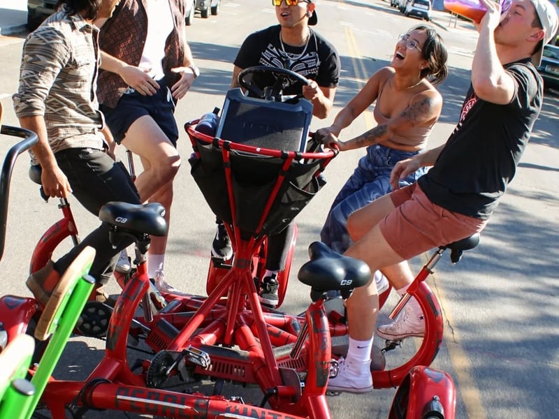 Pedal together on a six-seat bike with an onboard sound system for a fun, head-turning ride