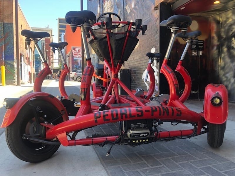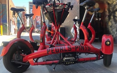 Ride a light, fast conference bike with space for up to six and an onboard sound system. Enjoy a social pedal that turns heads as you cruise.