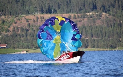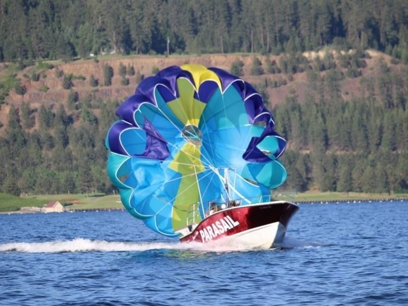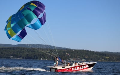 Soar above Coeur d’Alene on a parasailing adventure. Take off and land from the boat and enjoy lake views without getting wet.