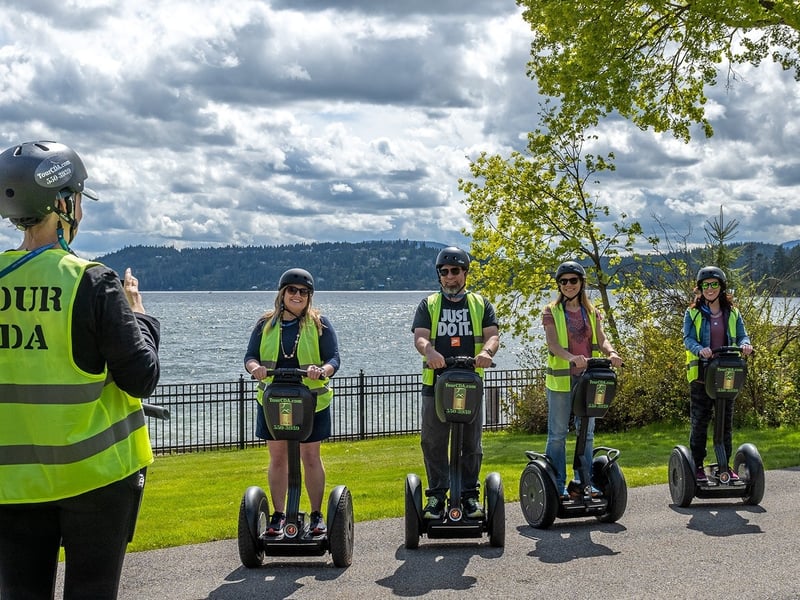 Glide through Coeur d'Alene on a narrated Segway tour along the lakeshore, parks, and historic sites. Enjoy guided commentary via audio headsets as you explore landmarks from the floating boardwalk to Fort Sherman.