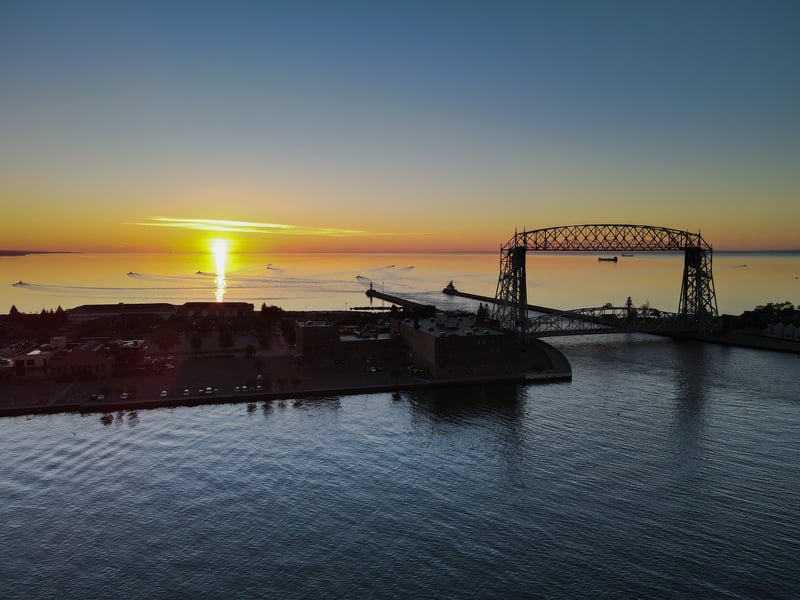 Catch Duluth’s sunrise and fall colors with coffee as you learn harbor history from the water