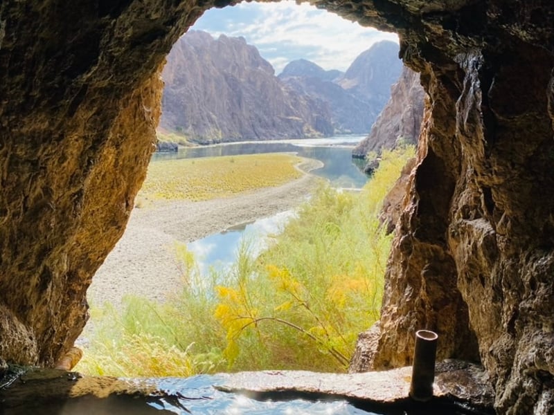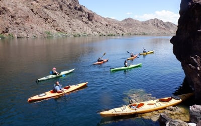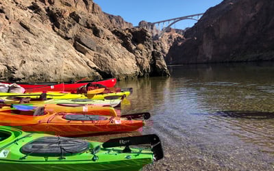 Paddle 12 miles down the Colorado River from the base of Hoover Dam into Black Canyon. Hike side canyons, soak in hot springs and photograph the glowing Emerald Cave.