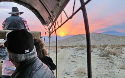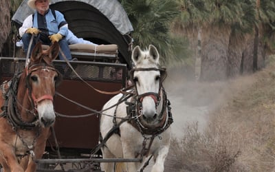 Travel like the pioneers on a mule-drawn covered wagon through a desert oasis wilderness preserve with a naturalist guide. Return to the ranch for sunset views, live western music, and a chuck wagon-style BBQ dinner.