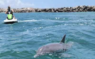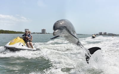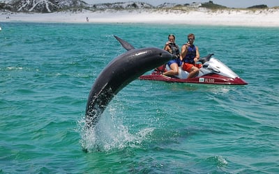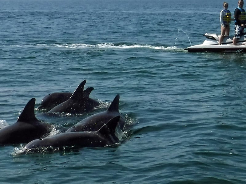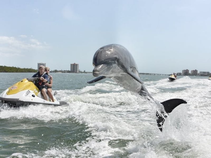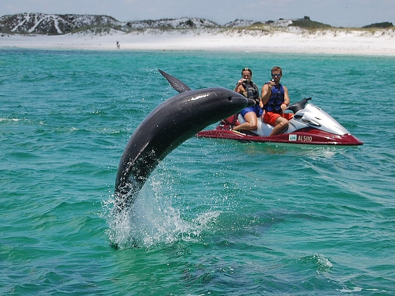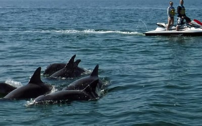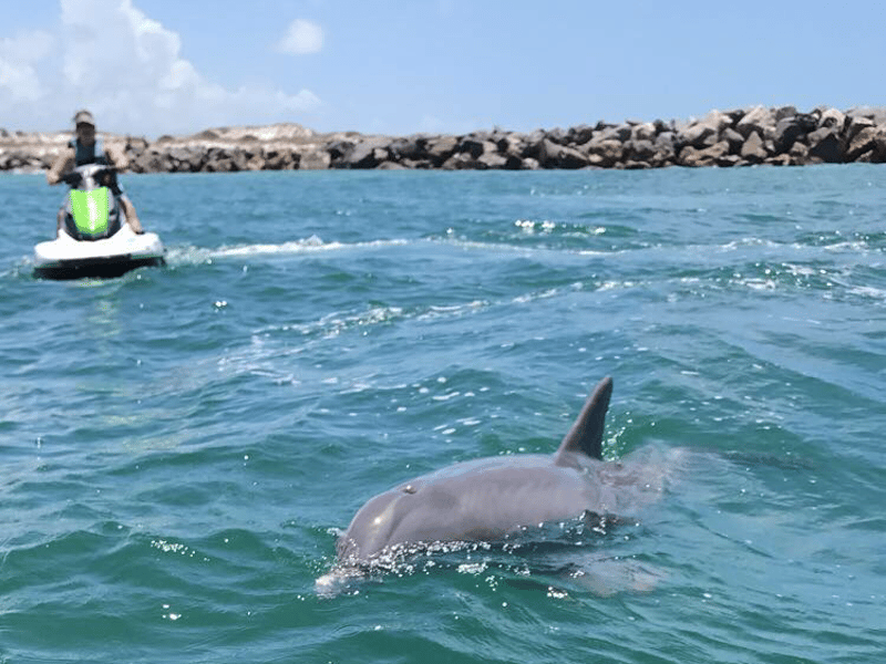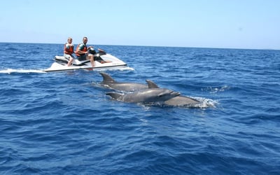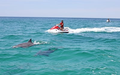 Ride a Yamaha jet ski on a 2-hour guided dolphin watch and stop at Crab Island