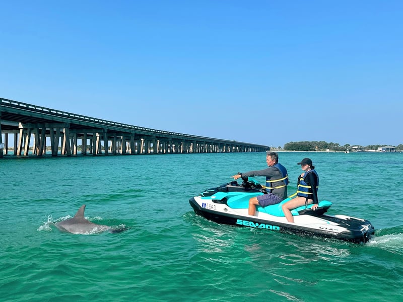 Spot wild dolphins while skimming across Choctawhatchee Bay on an early-morning guided jet ski tour