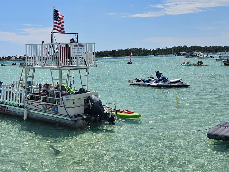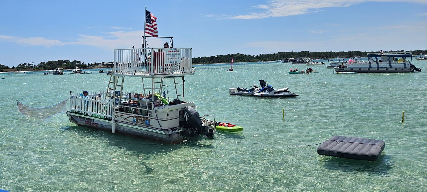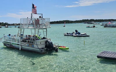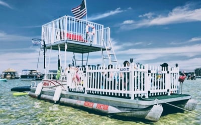 Head to Crab Island on a captained patio-style pontoon for a fun-filled outing. Choose 3–6 hours and enjoy games, snorkeling, paddle boarding, and relaxing on the water.