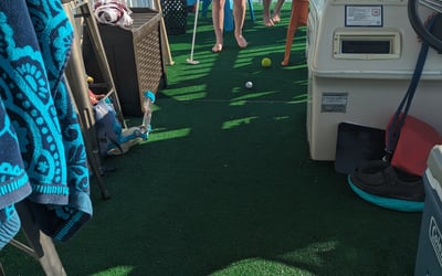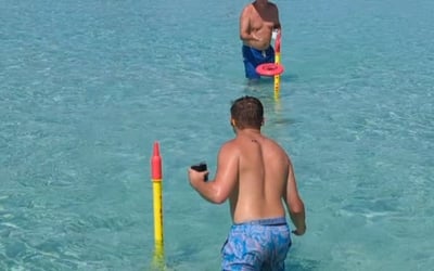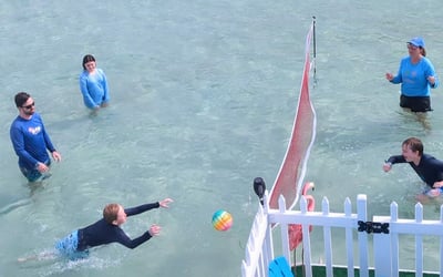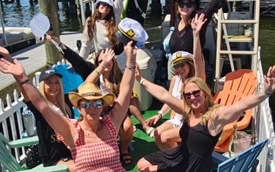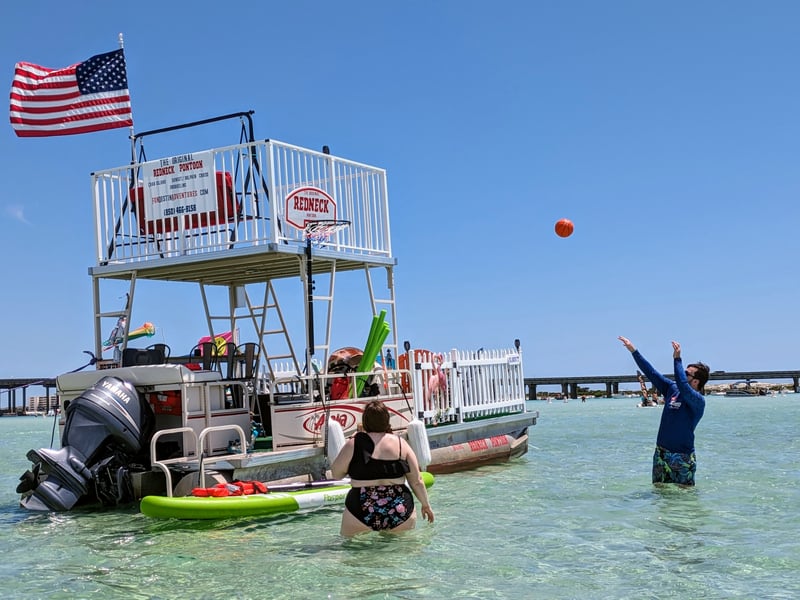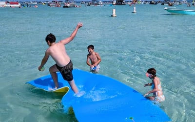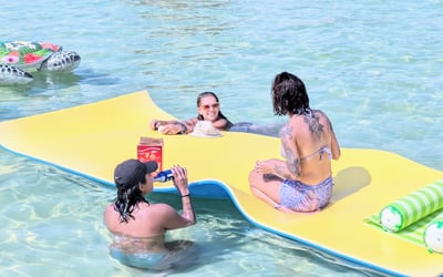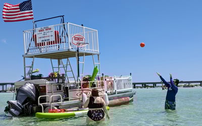 Enjoy a captained private pontoon packed with games, snorkeling, and paddle boarding at Crab Island