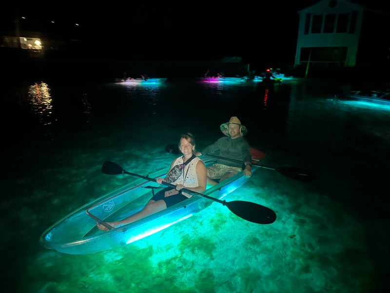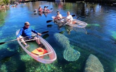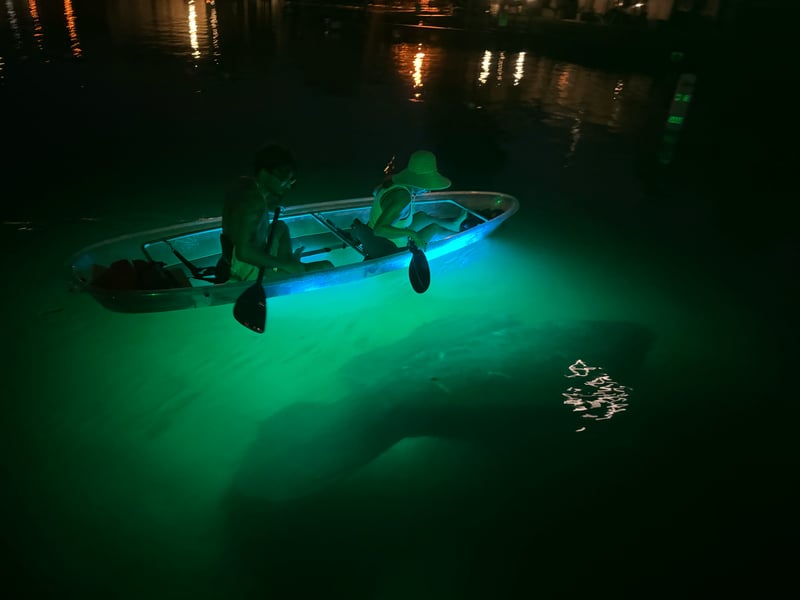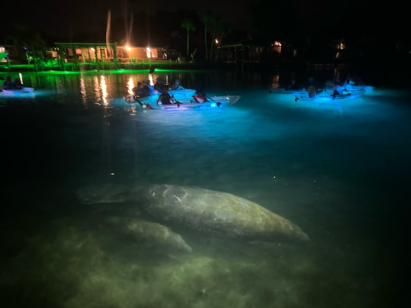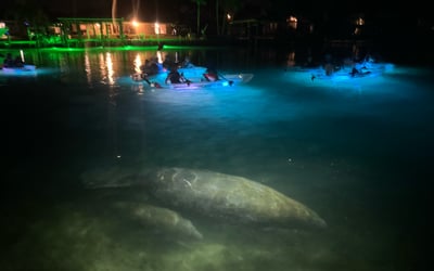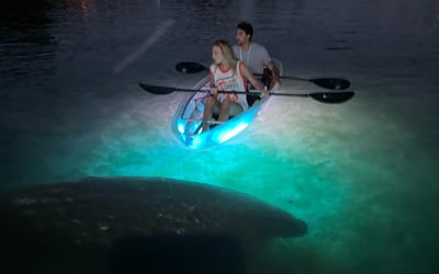Glide through Crystal River in all-clear tandem kayaks with a local guide. Watch the sunset over Kings Bay, then turn on kayak lights to reveal glowing springs and underwater life.