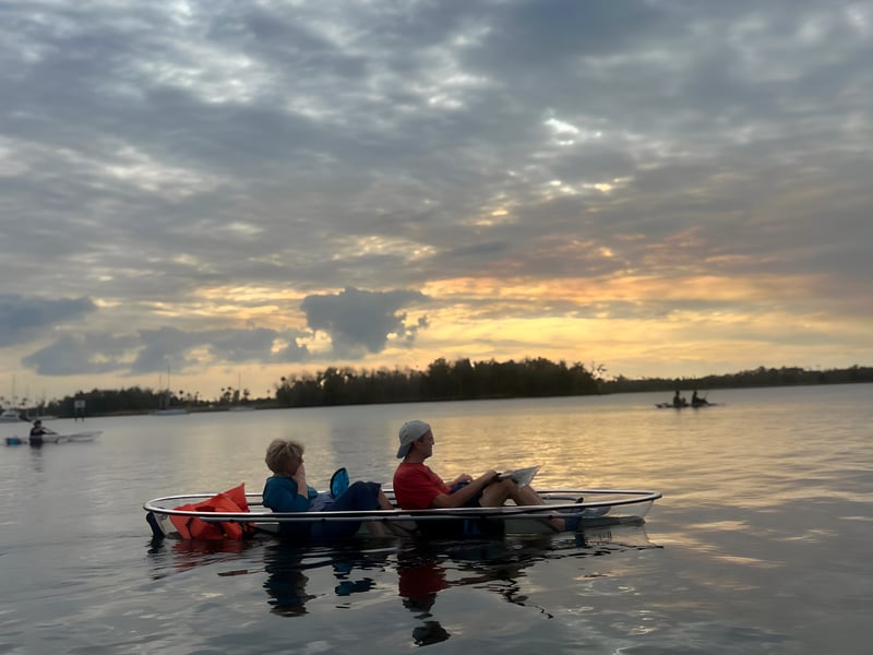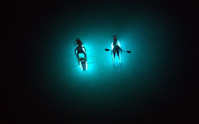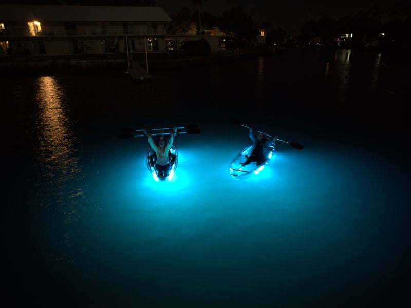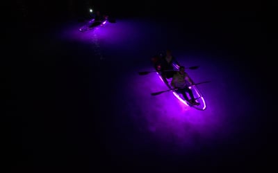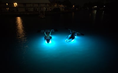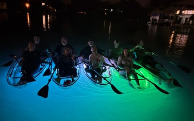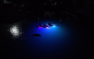 Paddle at sunset, then glide under glow lights with chances to spot manatees, photos included