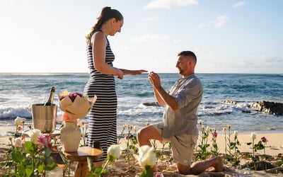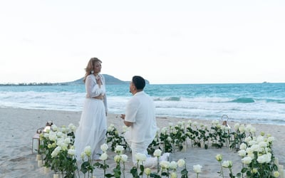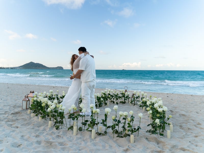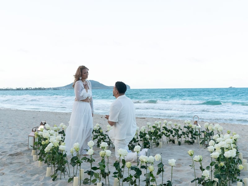 Pop the question with a bespoke floral setup and pro photos on Oahu
