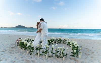 Pop the question with a bespoke floral setup on Oahu. Enjoy professional photography, romantic candle accents, and a seamless setup tailored to your vision.