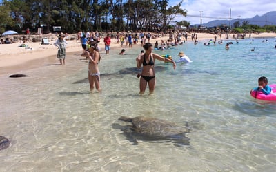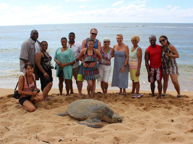 Travelers consistently rave about the knowledgeable and entertaining guides who make this full-day island circle tour truly special. Names like Justin, Nevin, Raul, and Sevass come up repeatedly, with guests praising their storytelling abilities, cultural insights, and genuine warmth. Nevin even plays ukulele and blows a conch shell to gather groups, adding authentic Hawaiian touches that visitors love. The tours blend multiple experiences: turtle watching (both on beaches and while snorkeling), scenic overlooks, local food stops including the famous Dole Plantation, and educational commentary about island history and legends. The 8-hour experience covers substantial ground across Oahu, giving first-time visitors an excellent island overview. Solo travelers mention feeling immediately welcomed into the group dynamic. Weather can occasionally impact snorkeling plans for safety reasons, but guides adapt by finding turtles basking on shore or adding extra wildlife viewing stops. One reviewer had concerns about vehicle expectations, though this appears to be an isolated complaint among overwhelmingly positive feedback. The added safety touch of having a lifeguard present during water activities gives peace of mind.