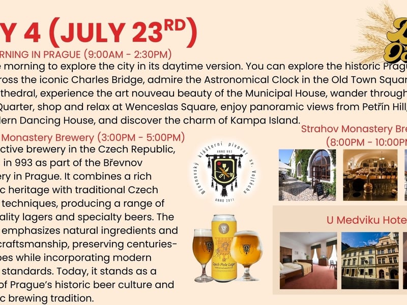Journey through the Czech Republic on an 8-day small-group exploration of iconic breweries and monastic beer traditions. Enjoy guided tours, tastings, and seamless transport with stays at a historic brewery hotel in Prague.