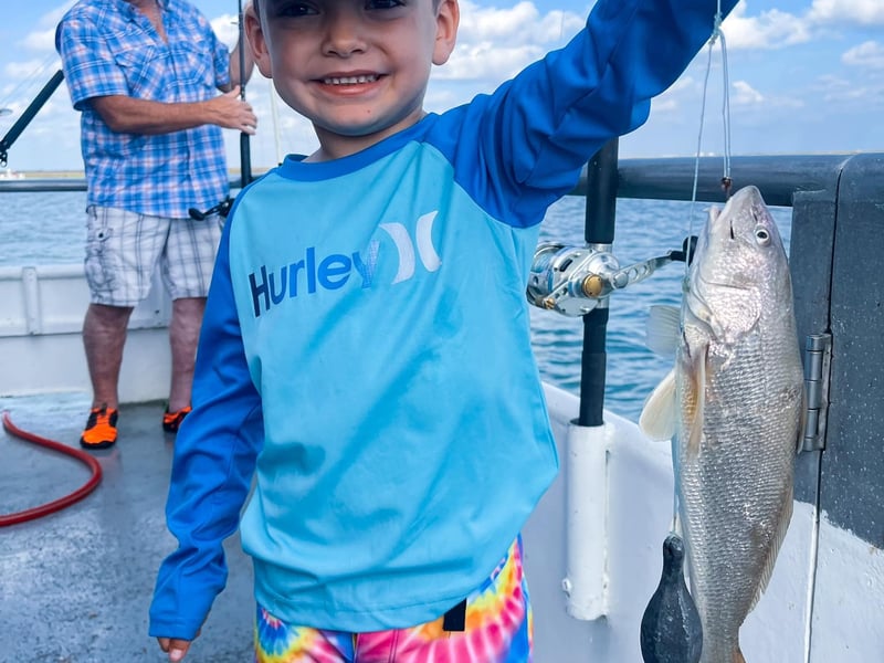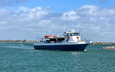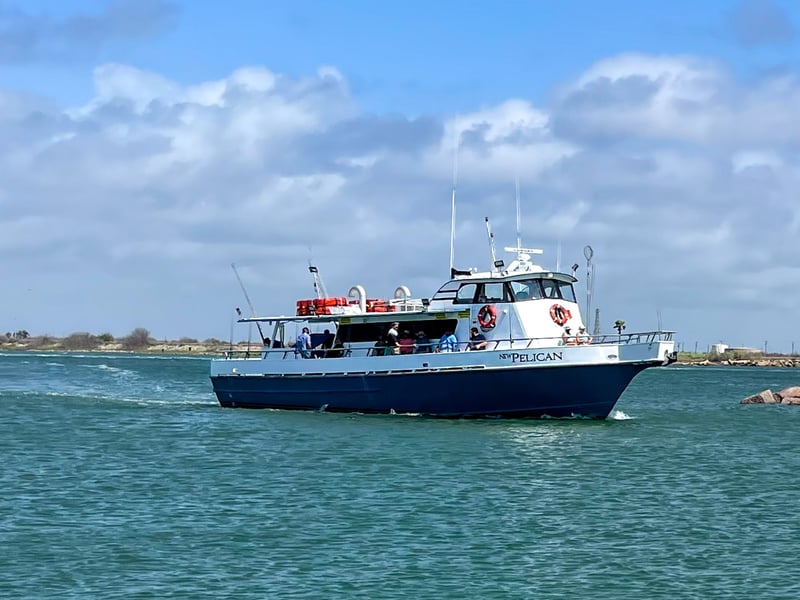 Everyone 17+ must have a valid Texas saltwater fishing license. Limit one child per accompanying adult. No outside food, drinks, or coolers; snacks and beverages are sold on board.