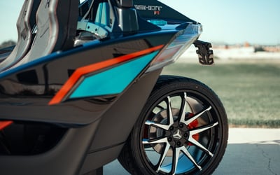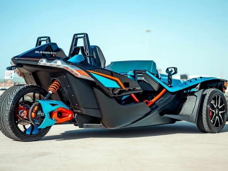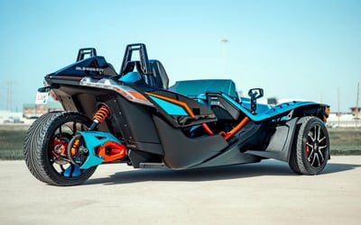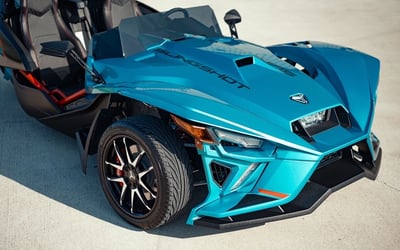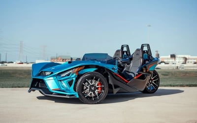 Experience an open-air, 3-wheel ride with unlimited mileage. Drive a Polaris Slingshot equipped with navigation, radio, Bluetooth, USB, and weatherproof interiors.