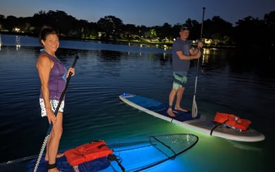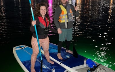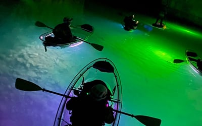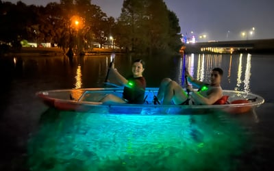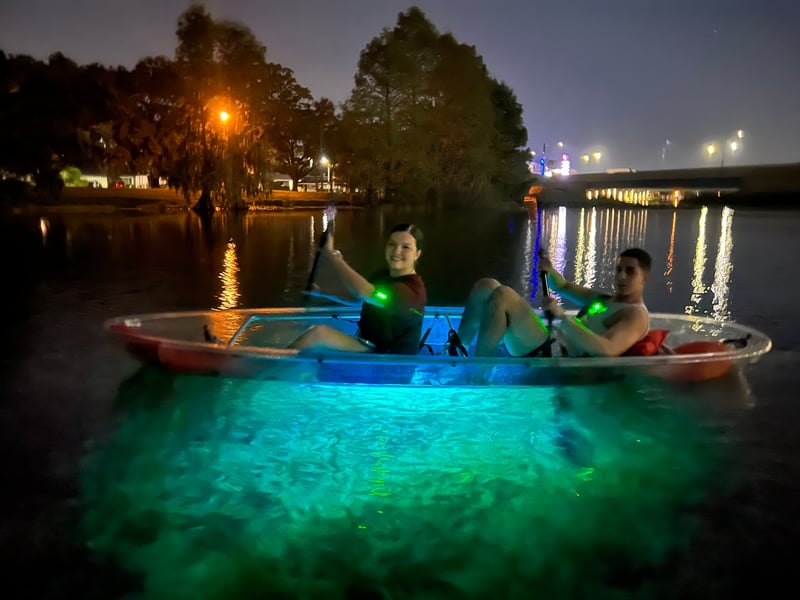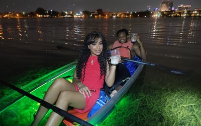 Paddle a clear kayak or stable paddleboard across Orlando's spring-fed Lake Ivanhoe while multicolor LED lights illuminate the water. Pause mid-lake to toast with complimentary sparkling wine as city lights shimmer around you.