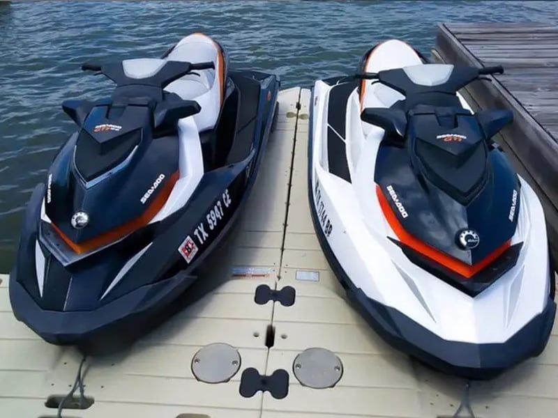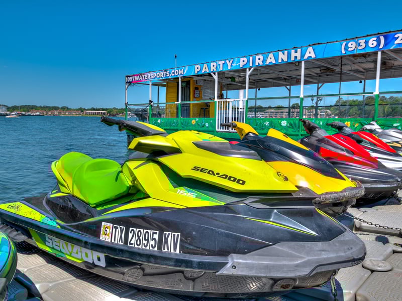 A $400 security deposit is required, and an optional damage waiver is available. Drivers born after September 1 1993 must hold a Texas Boater Education Card. Weight limit is 300–450 lb per watercraft.