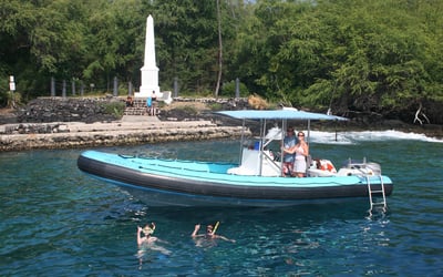 Sail from Keauhou Bay for a 4-hour guided snorkel that visits Captain Cook Monument and the Place of Refuge. Learn about Hawaiian culture and volcanic geology as you explore vibrant reefs.