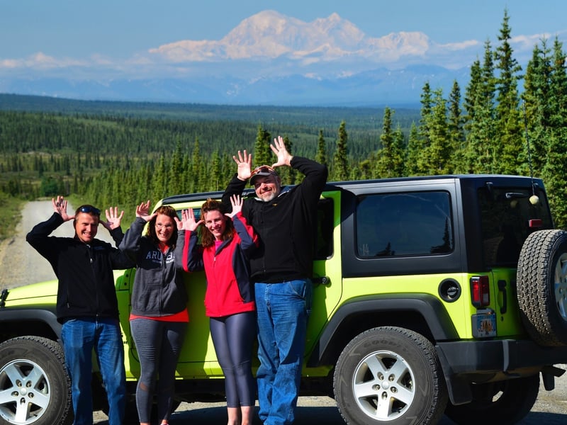 Drivers must be 25+ with a valid license; this is a driving tour and at least one guest must drive the Jeep. Tours run rain or shine; views of Denali and wildlife are weather dependent and not guaranteed. The Denali Highway is a gravel public road, not an off-road route; parties of 2+ have their own Jeep, parties of 1 may be paired.