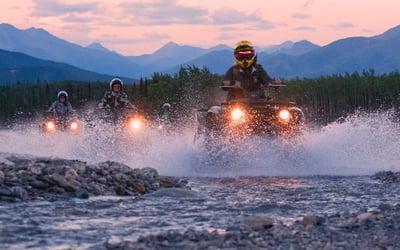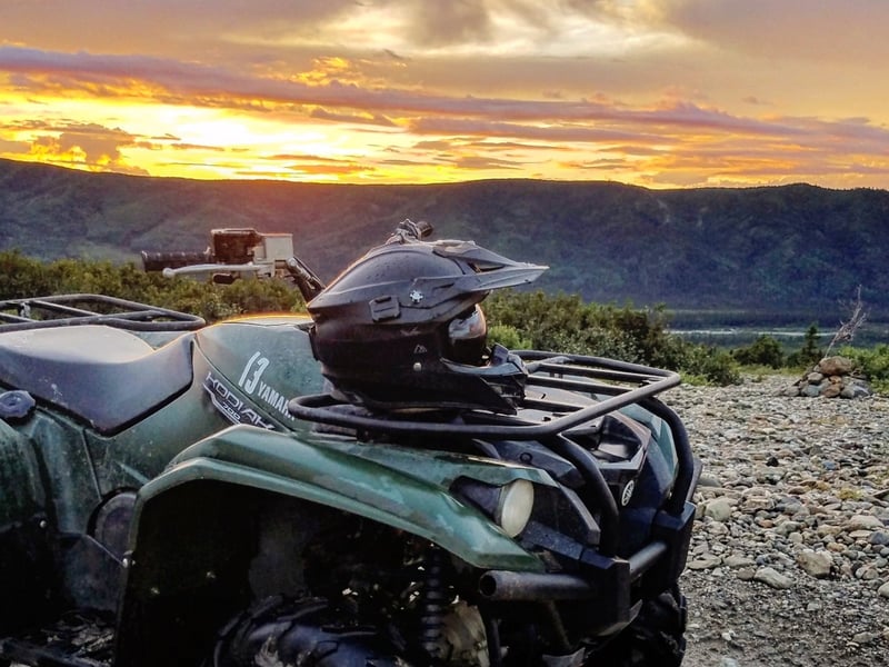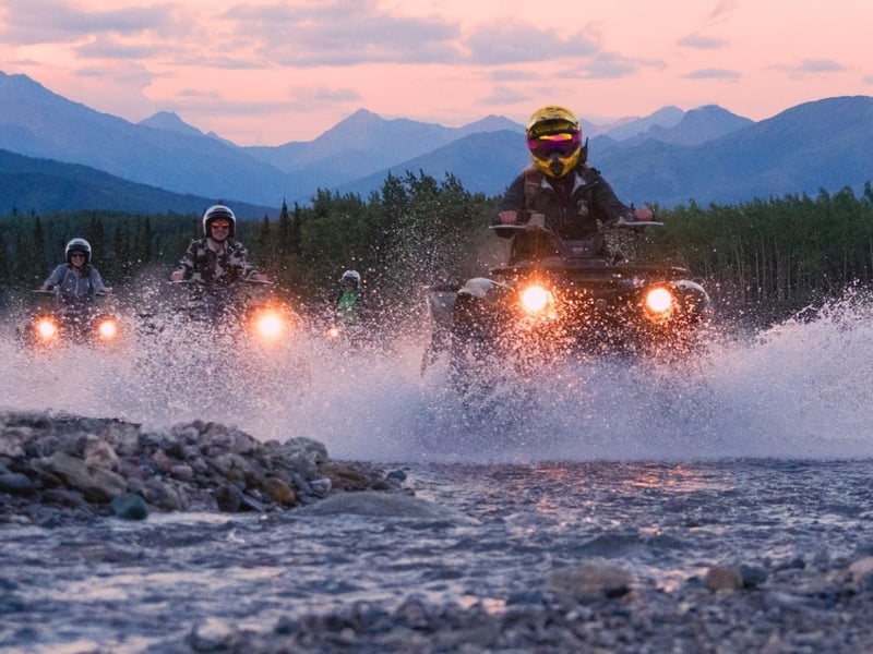 Ride under Alaska's Midnight Sun on a guided ATV adventure near Denali. Depart around 9 pm near the summer solstice to explore forest trails and take in extended sunsets.