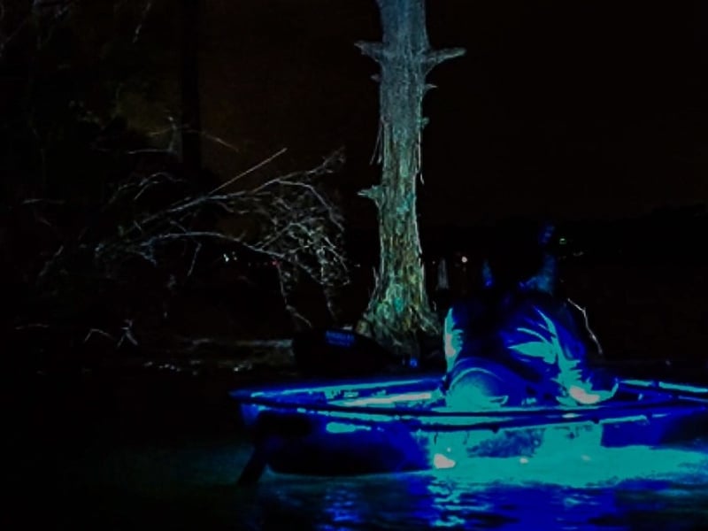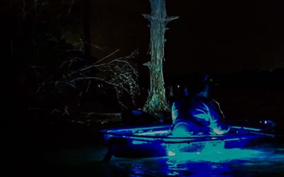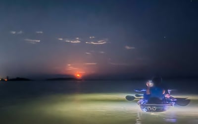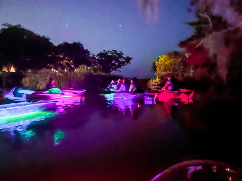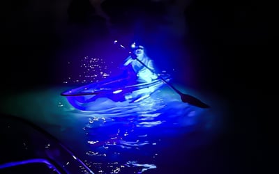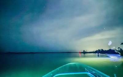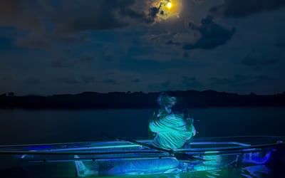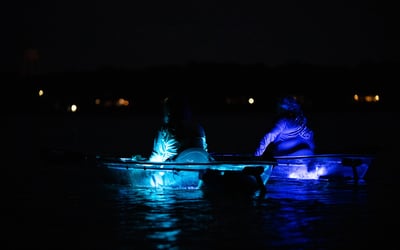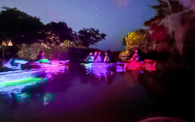 Paddle glowing clear kayaks to Pirates Cove after dark and hear haunting local legends on calm, guided waters