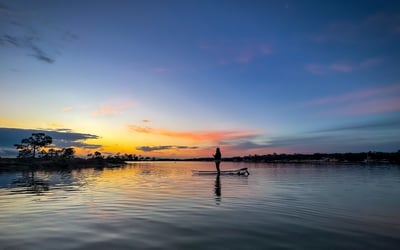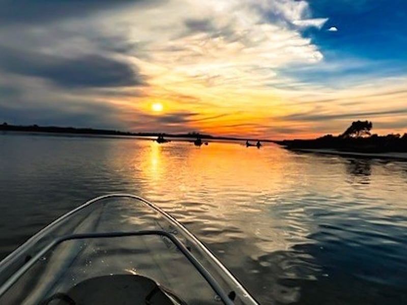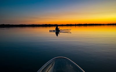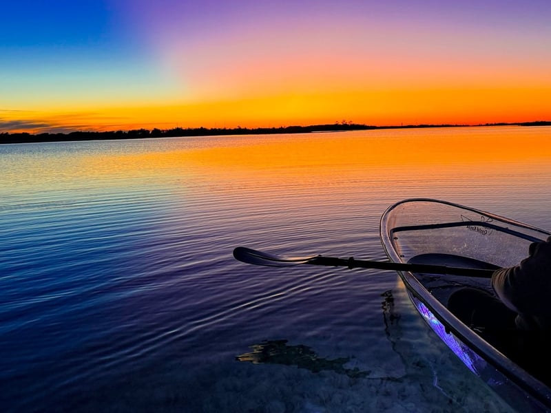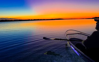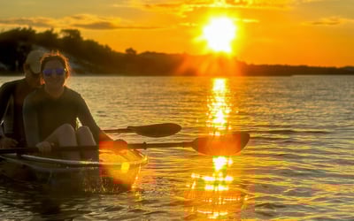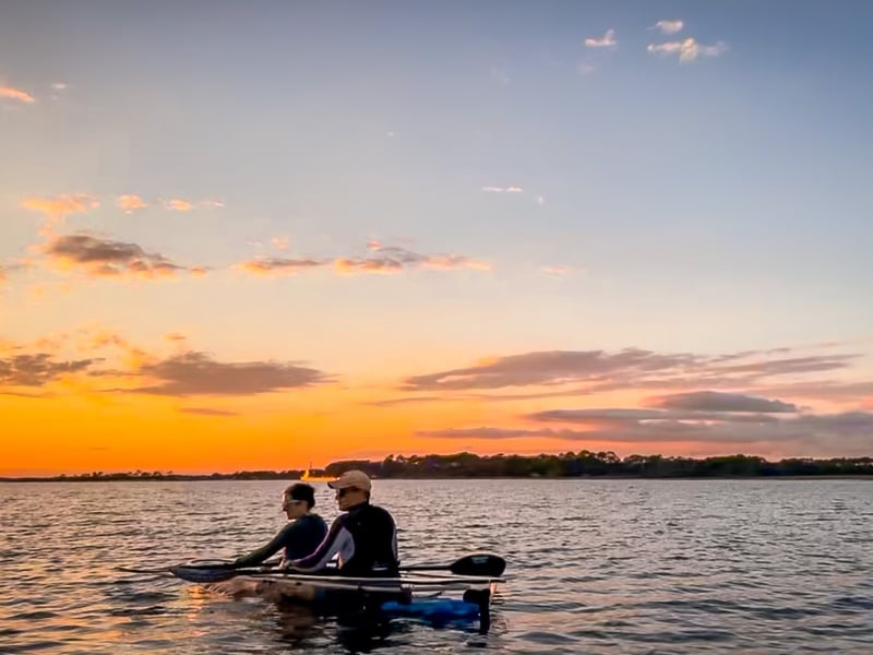 Paddle clear tandem kayaks at sunset with a small group and experienced guide