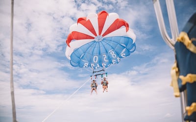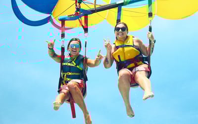 All flyers will parasail in double or triple flights. Participants who wish to fly must be at least 6 years old and weigh a minimum of 60 lbs, while observers riding on the boat must be at least 3 years old. Pregnant women are not permitted on the boat. For safety reasons, water dips may be restricted during high winds. The maximum weight limit is 450 lbs per flight, which is the combined weight of all flyers.