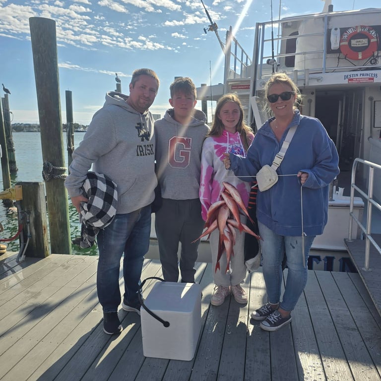 Join the Destin Princess for a family-oriented 6-hour deep sea fishing trip. Learn the basics with an experienced crew and a chance to bring home your catch.