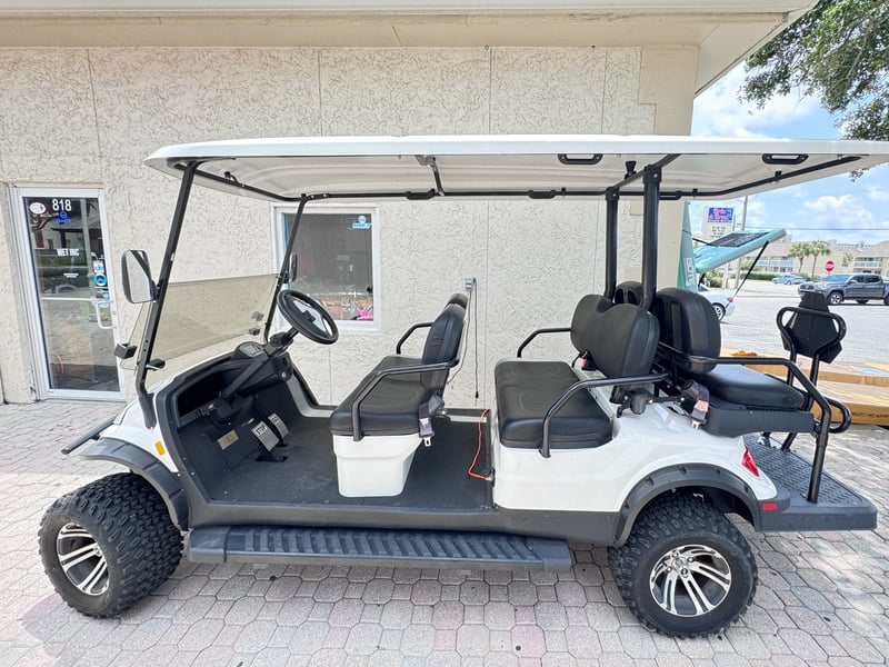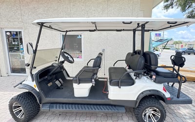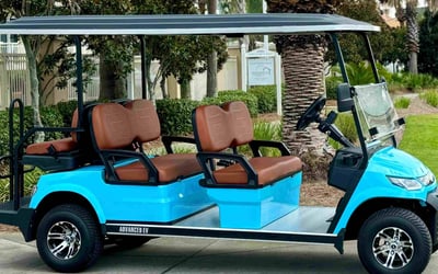 Explore Destin in a brand-new street-legal 6-person golf cart. Cruise Scenic Highway 98, head to the beach, and enjoy a fun, convenient ride.