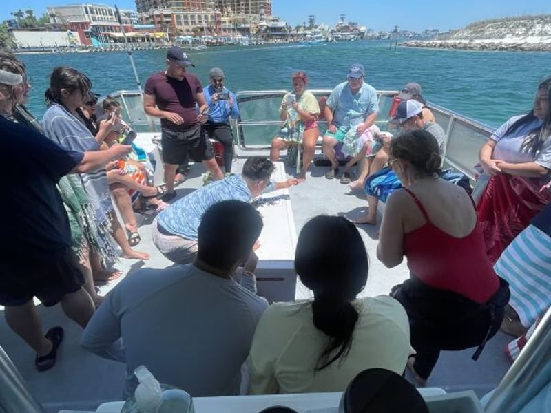 Cruise Destin’s emerald waters in search of wild dolphins aboard a Coast Guard certified catamaran. Enjoy harbor views and sunset colors as guides share local highlights.