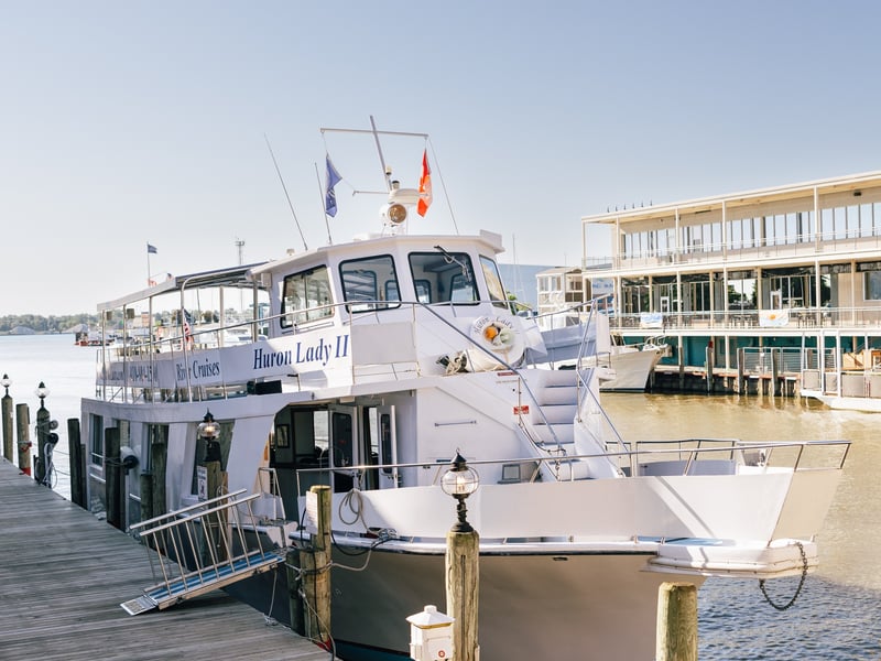 Set out aboard the Huron Lady II for a relaxed cruise to the River Crab and a fine dining experience. Sail on select Tuesdays in July and August.