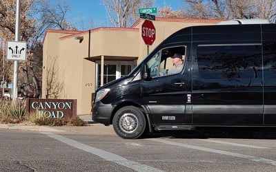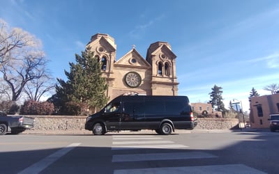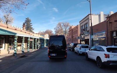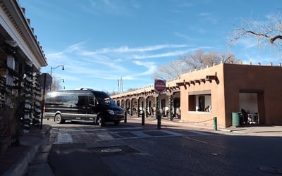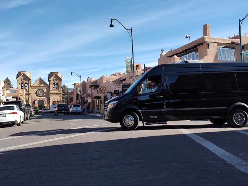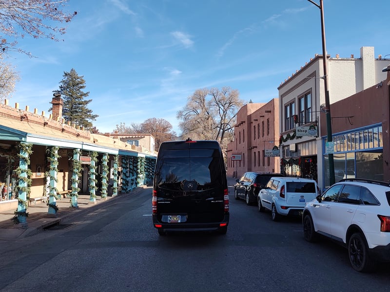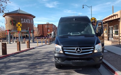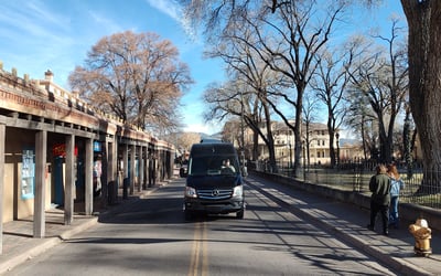 Explore Santa Fe’s landmarks with a 12th‑generation local in a comfortable Mercedes‑Benz van