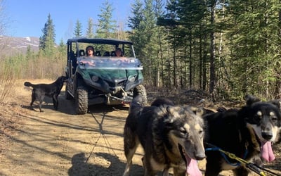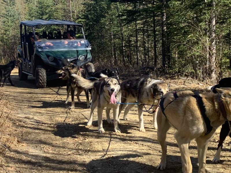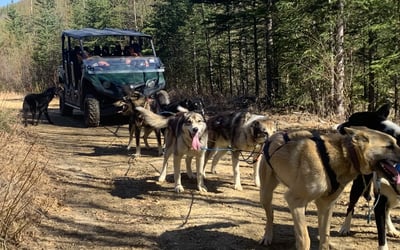 Ride a side-by-side ATV as a dog team pulls you along a scenic nature trail