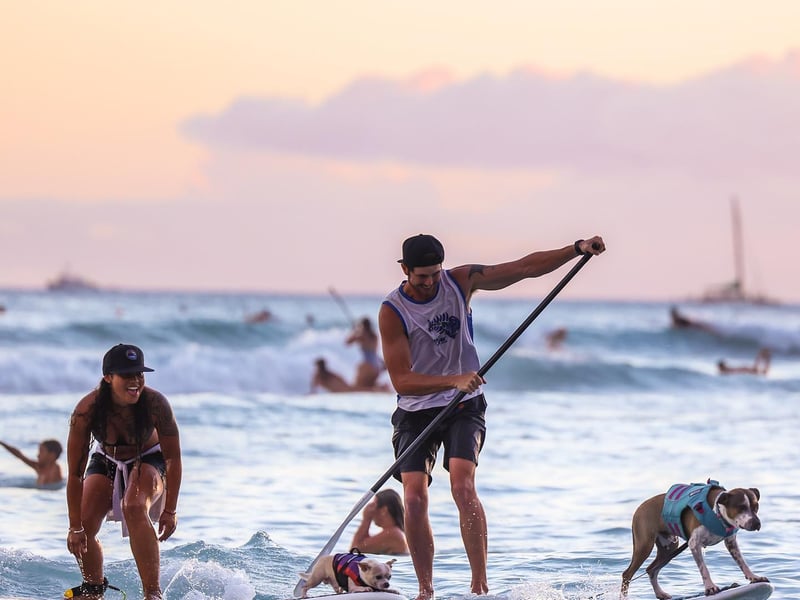 Tyler and his team of rescue dogs have created something truly special on Oahu's calm rivers. First-time paddleboarders consistently praise how welcoming and beginner-friendly the experience is, with Tyler's instruction making everyone feel confident on the water. The real stars, though, are the rescue pups—Sandy, Dobby, Phoenix, Poke, and the rest of the crew—who paddle along, jump between boards, and generally steal everyone's hearts. Each dog has their own rescue story that Tyler shares during the tour. What makes this experience stand out is how it combines paddleboarding with local history lessons, stunning sunsets, and the chance to spot sea turtles in the river. Multiple honeymooners and vacationers call it the highlight of their entire Hawaii trip, even beating out traditional activities like snorkeling and ziplining. The calm river location (mentioned as perfect for learning) and Tyler's positive energy create a relaxed, joyful atmosphere. Many guests book multiple sessions during their stay, and some even report it inspired them to get paddle boards for their own dogs back home. It's clearly a unique way to enjoy Hawaii's natural beauty while supporting a great cause.